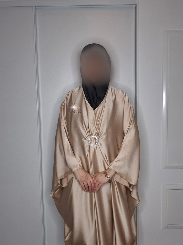 Abaya satiné manche papillon avec boucle strass